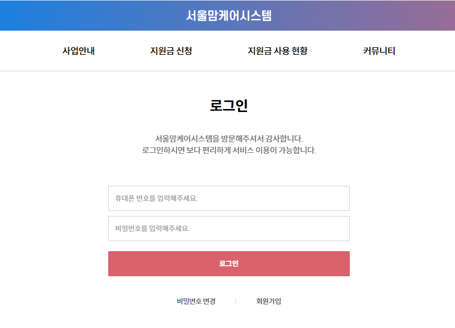 아래 서울 맘케어 홈페이지에서 직접 신청하셔야 합니다.