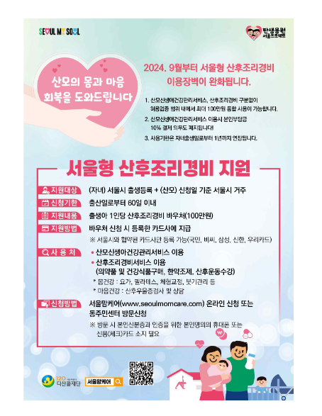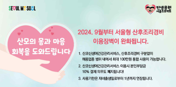 서울시가 저출생 문제를 해결하기 위해 시행 중인 '서울형 산후조리경비' 제도가 2024년 9월 1일부터 대폭 개선됩니다.